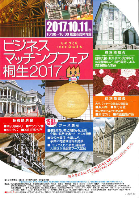 ビジネスマッチングフェア桐生2017は終了いたしました。 ご来場いただいた皆様、どうもありがとうございました。