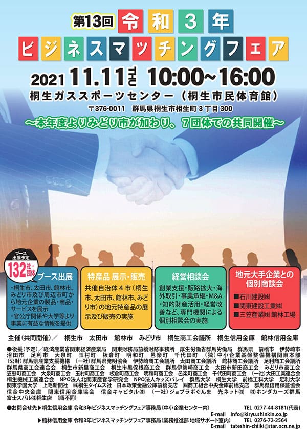 令和3年ビジネスマッチングフェアは終了いたしました。 ご来場いただいた皆様、どうもありがとうございました。