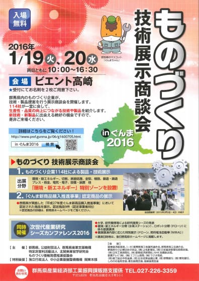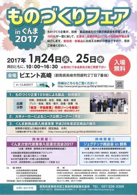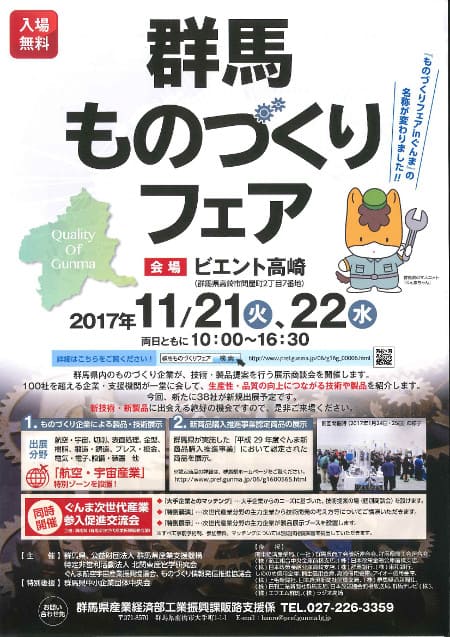 ものづくりフェアinぐんま2017は終了いたしました。 ご来場いただいた皆様、どうもありがとうございました。