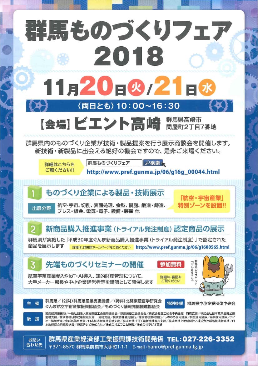 群馬ものづくりフェア2018は終了いたしました。 ご来場いただいた皆様、どうもありがとうございました。