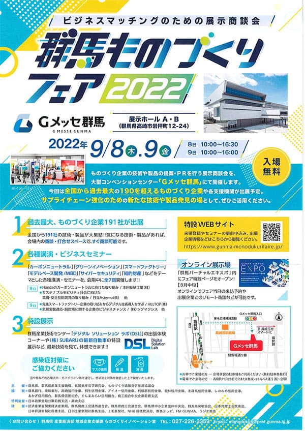 群馬ものづくりフェア2022は終了いたしました。 ご来場いただいた皆様、どうもありがとうございました。