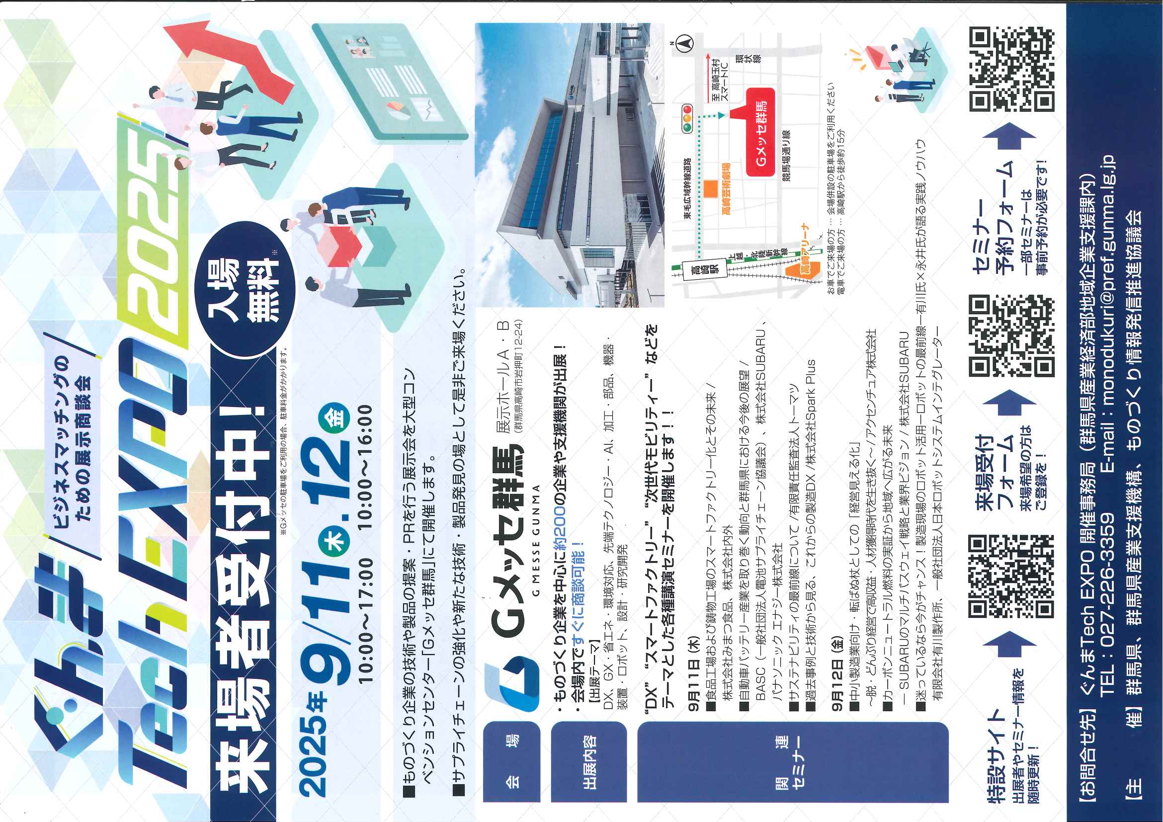 ぐんま Tech EXPO2025 ビジネスマッチングに出展いたします。